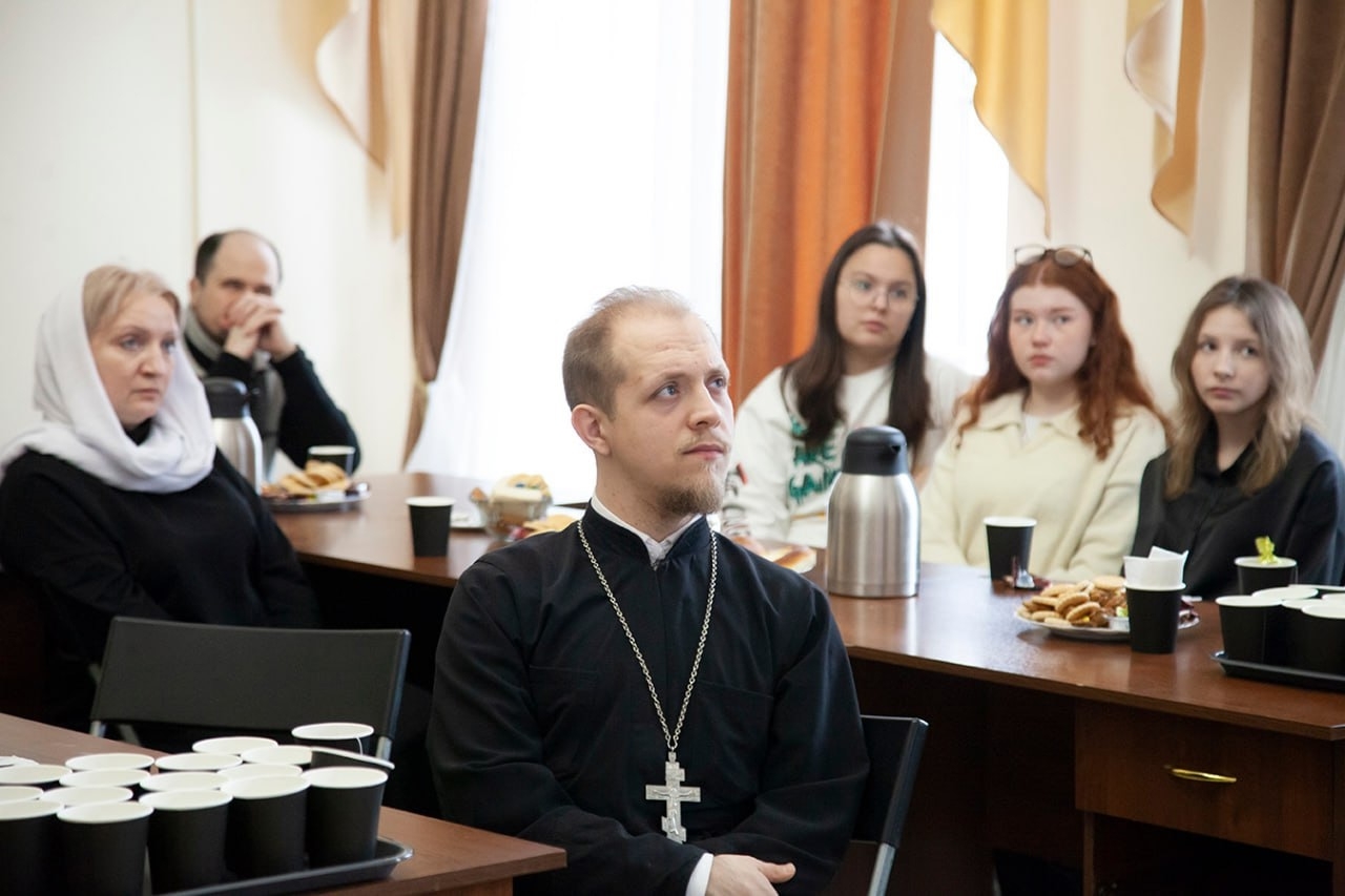 Затем к участникам встречи с приветственным словом обратился ректор семинарии иеромонах Платон (Кудласевич). Отец Платон рассказал об основании семинарии священномучеником Арсением (Мацеевичем), о предстоящем в следующем году праздновании 20-летия возрождения духовной школы.