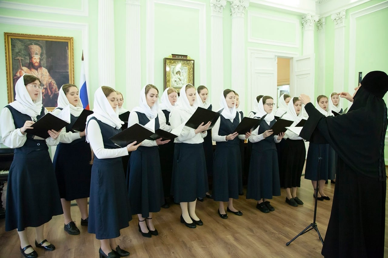 В самом начале встречи перед гостями семинарии выступил хор воспитанниц Регентской школы под управлением руководителя школы монахини Георгии (Кисловой).